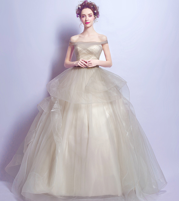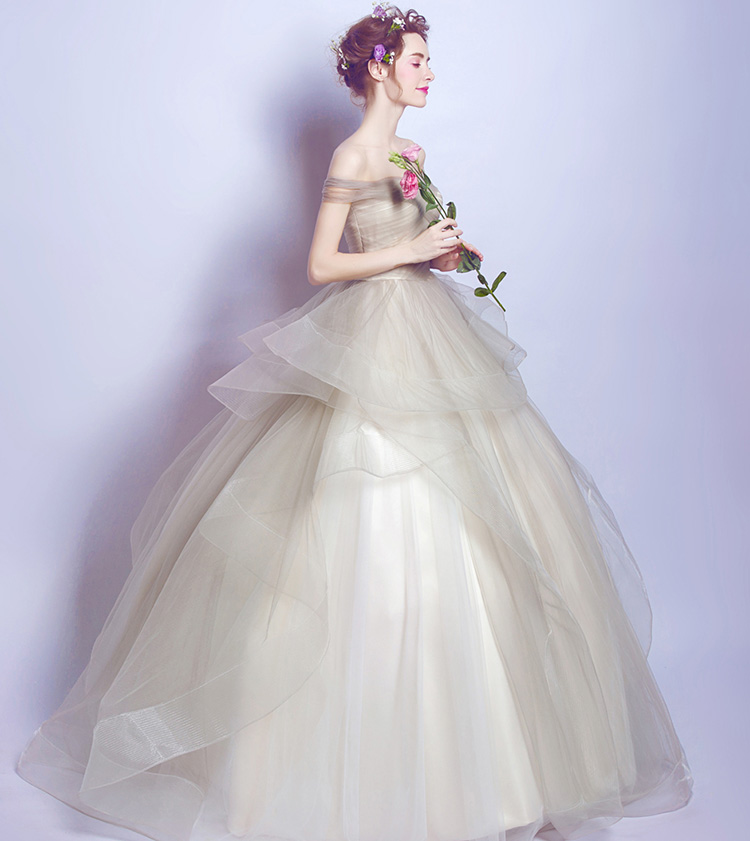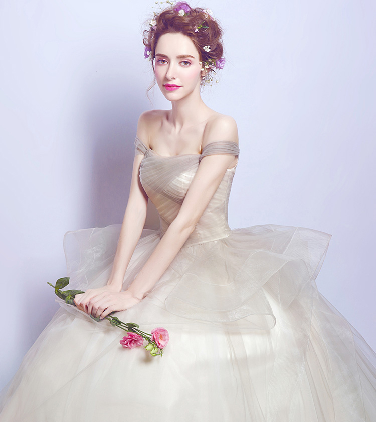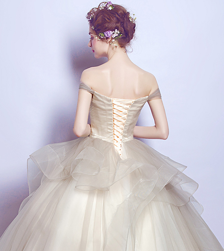 Camel Elegant Off The Shoulder Sweetheart Ball Gown