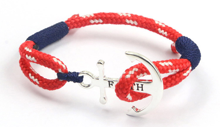 This Faith bracelet features a silver anchor, with blue whipping knot details. Crafted from a vibrant red cord, red is known to be the colour of romance and love. A versitile piece which can be worn for all occasions, adding character and style.