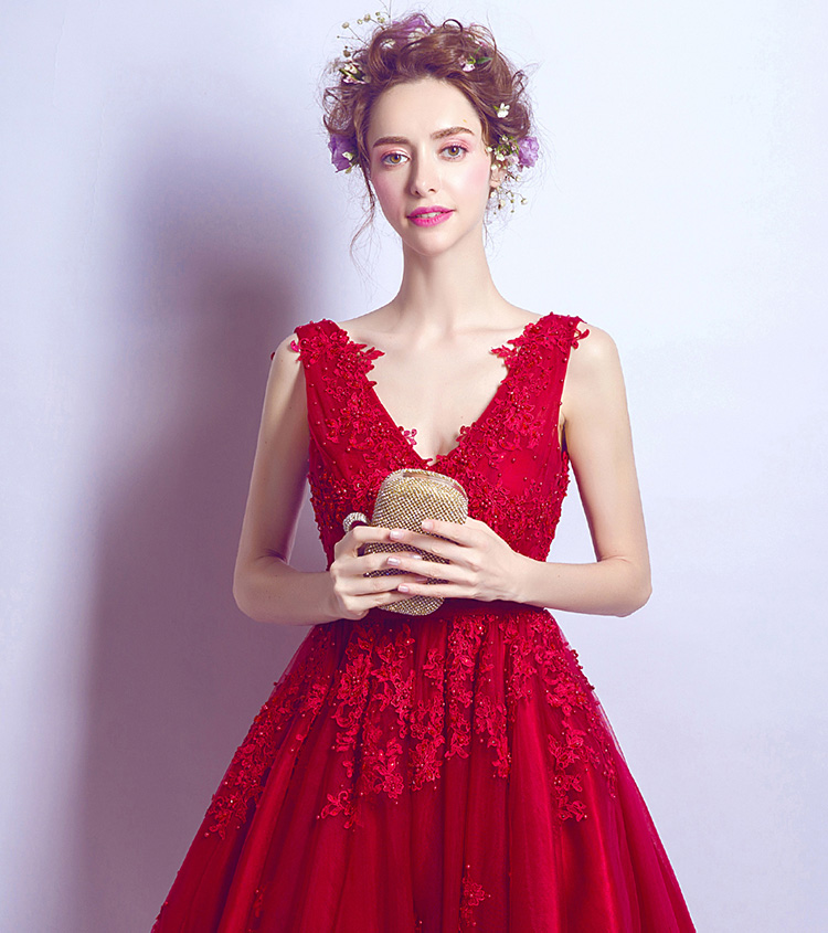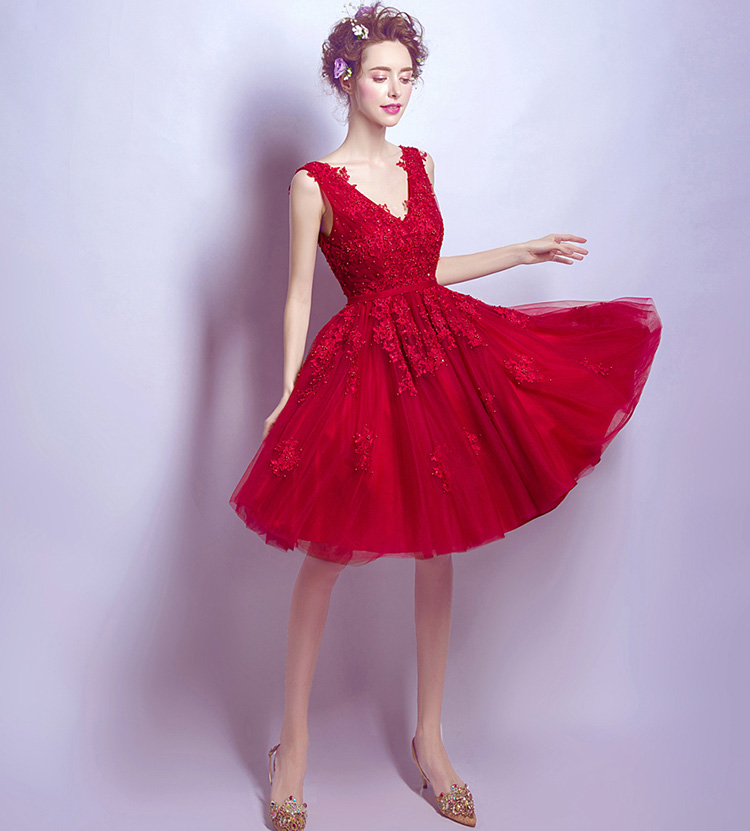Fashion Beautiful Red Lace Sleeveless Women Cocktail Dresses