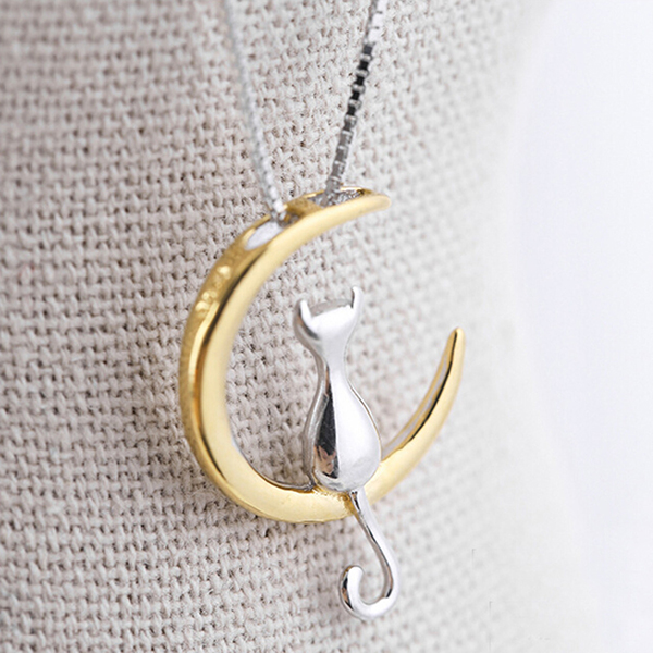 Fashion Cat Moon Pendant Necklace Charm Silver Gold Color Link Chain Necklace For Pet Lucky Jewelry For Women Gift
