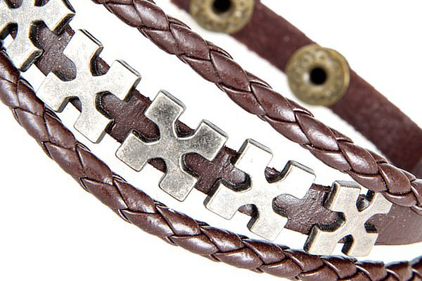 Fashion Cross Pattern Snap Button PU Leather Bracelet