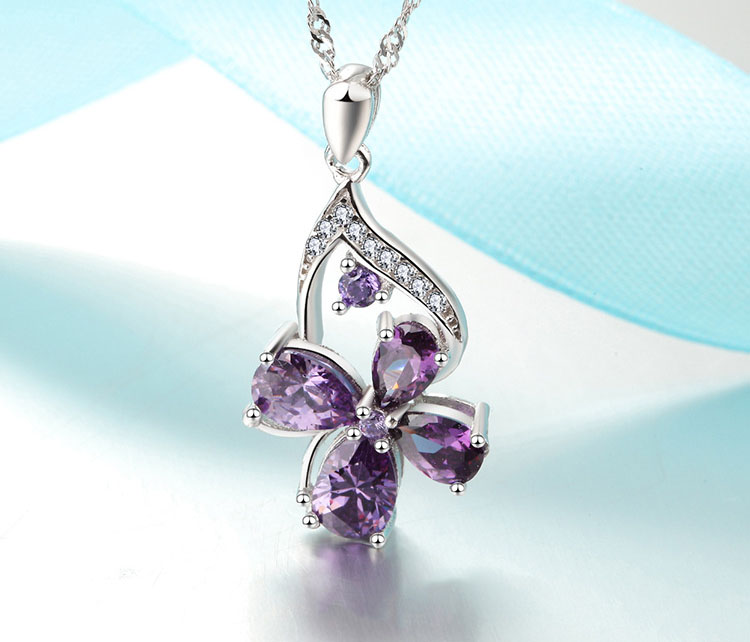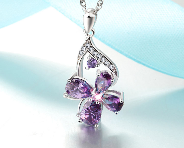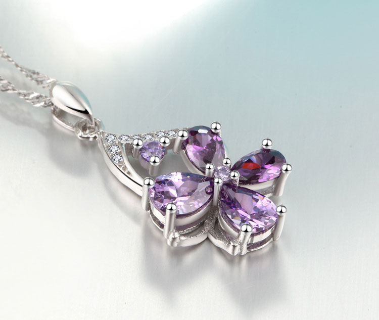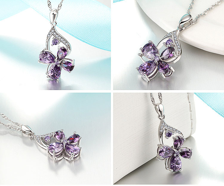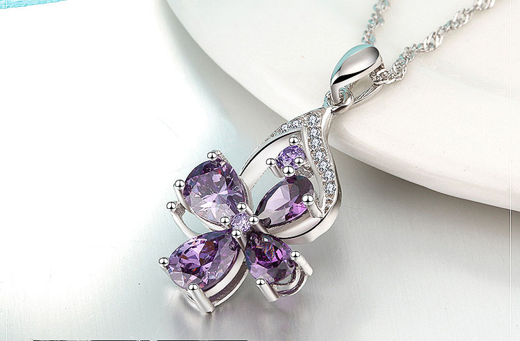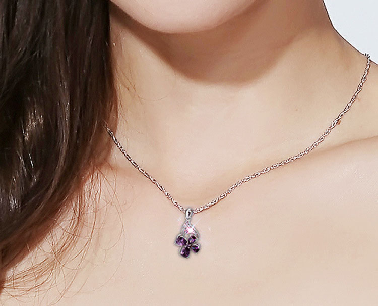 Fashion Crystal Charm Four Leaf Clover Pendant Necklace