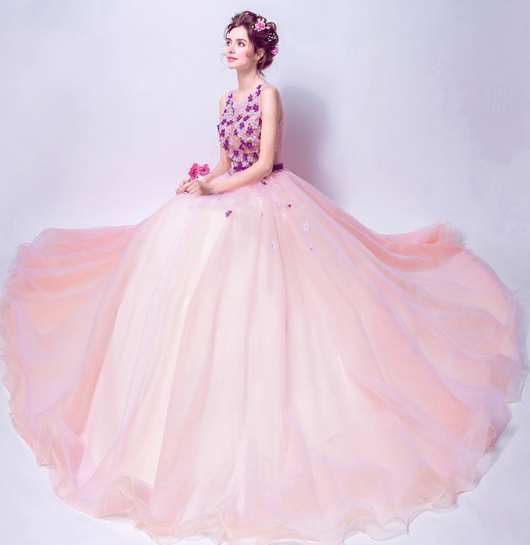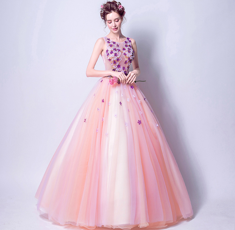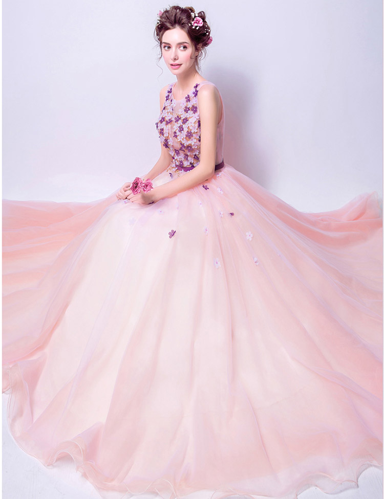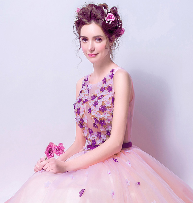 Fashion Elegant Flowers Decorated Long Evening Dress