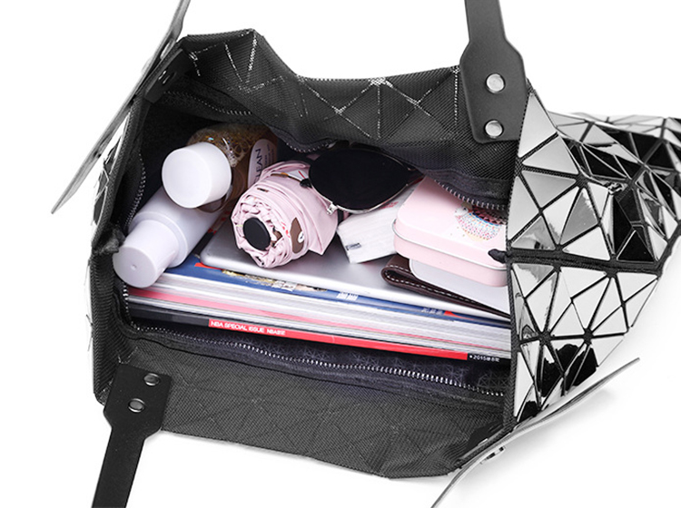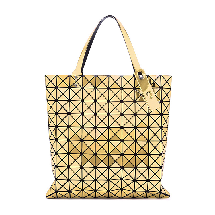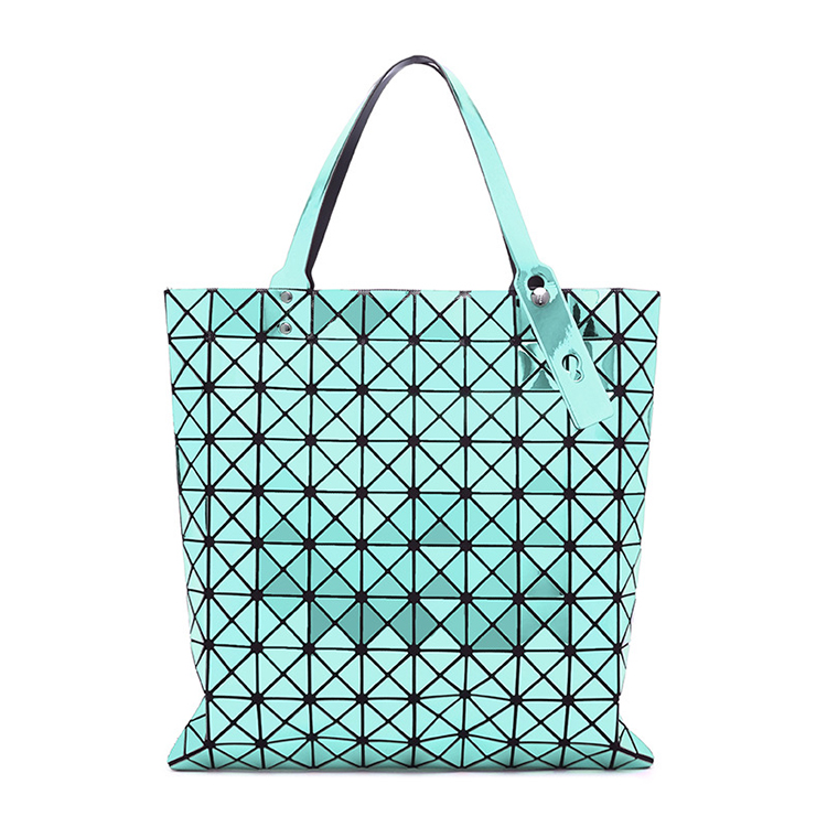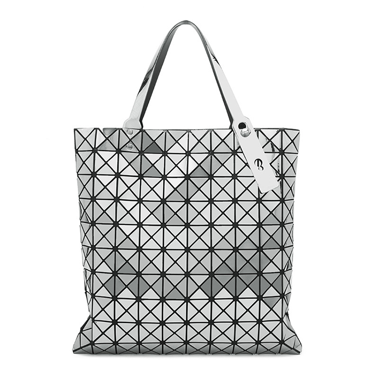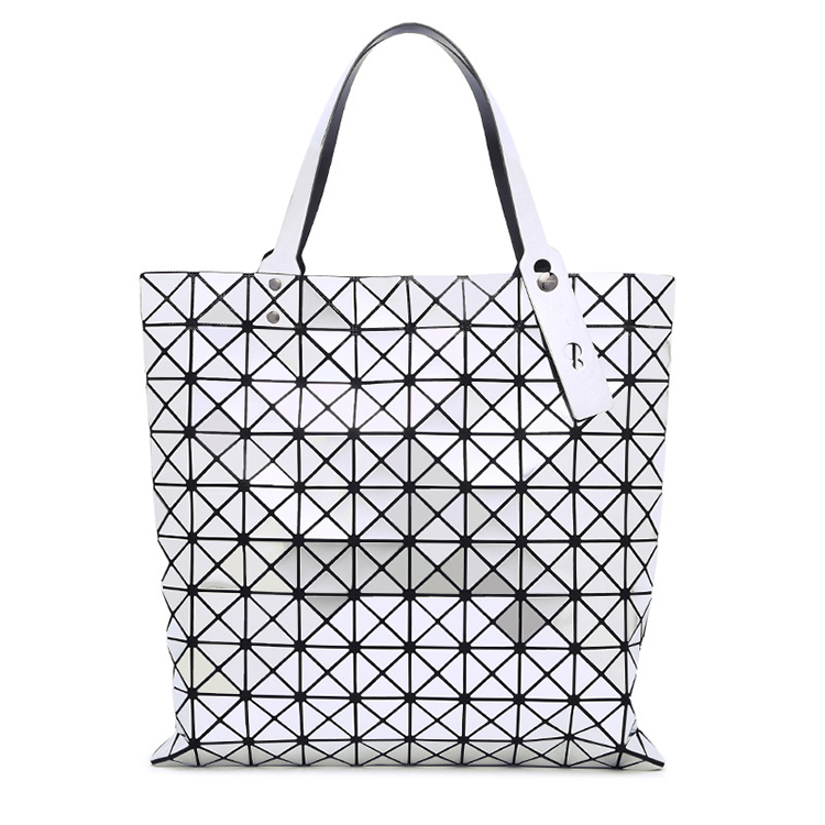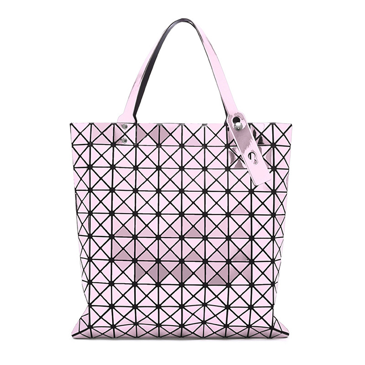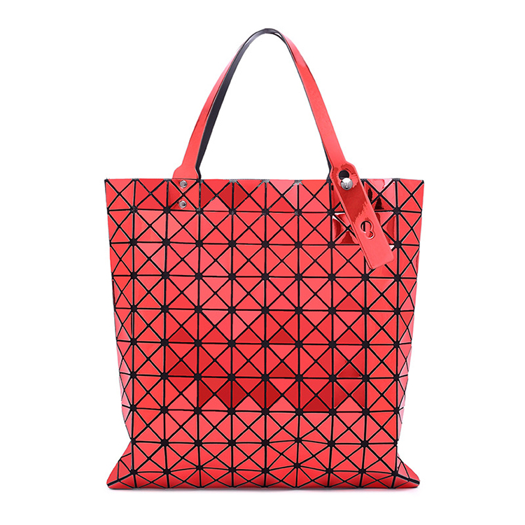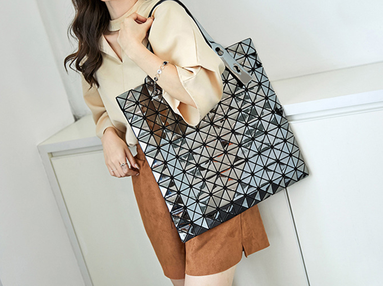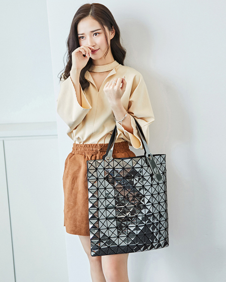 Fashion Geometric Plaid Tote Bag PU Leather Shoulder Bag Top-handle Handbags Large