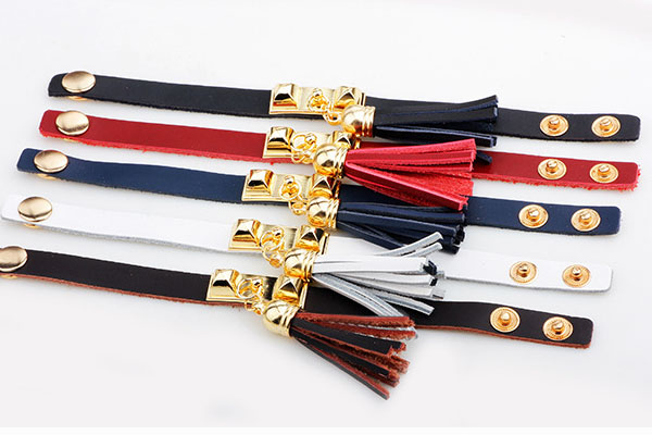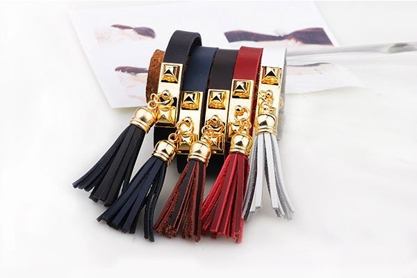Fashion Golden Rivets PU Leather Bracelet With Tassel Pendant