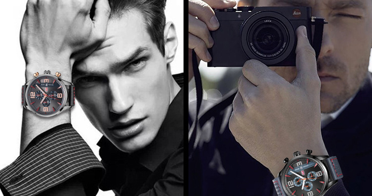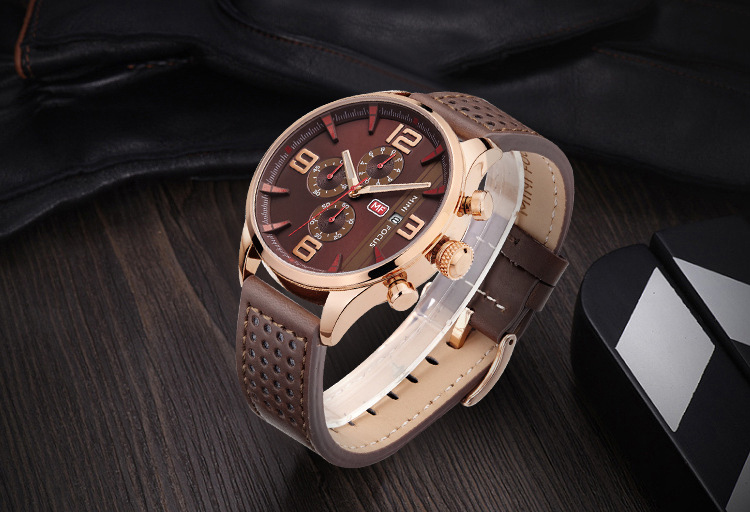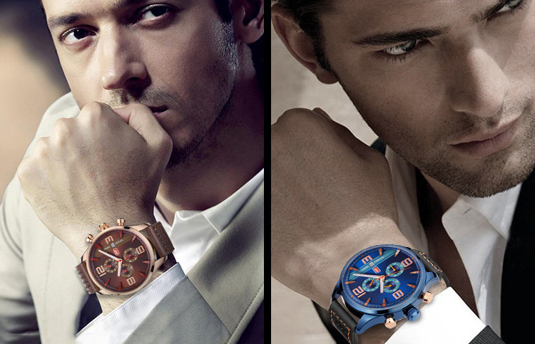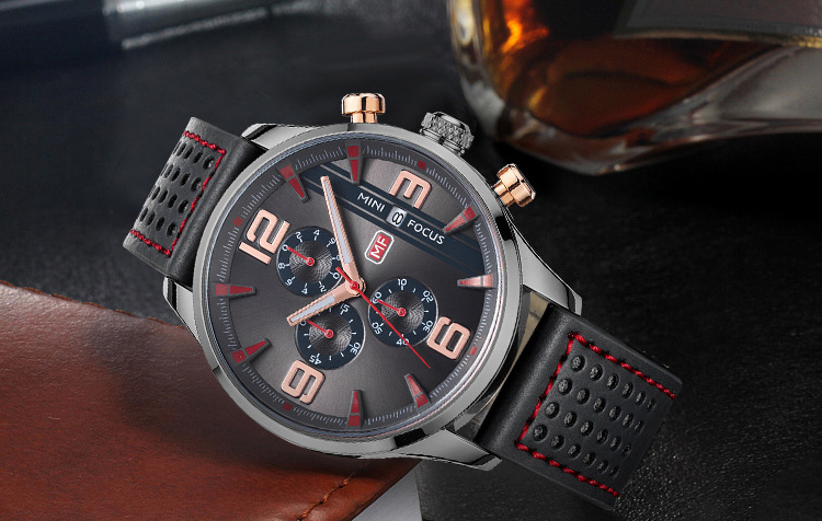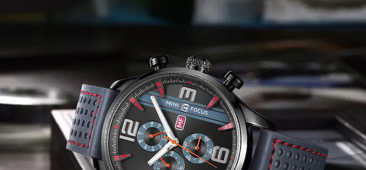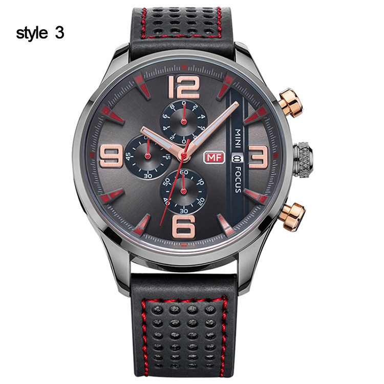 Fashion Men's Multifunction Leather Band Waterproof Wrist Watch
