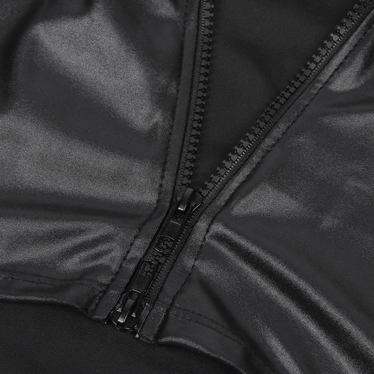 Take charge of your desires in this vegan leather chemise set featuring sheer lace cups, adjustable spaghetti straps, a front zipper closure, a smooth bodice, and a mini length.