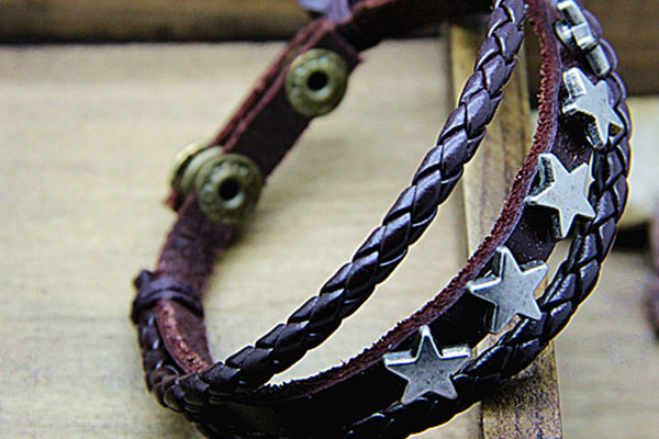 Five Stars Pattern Snap Button PU Leather Bracelet