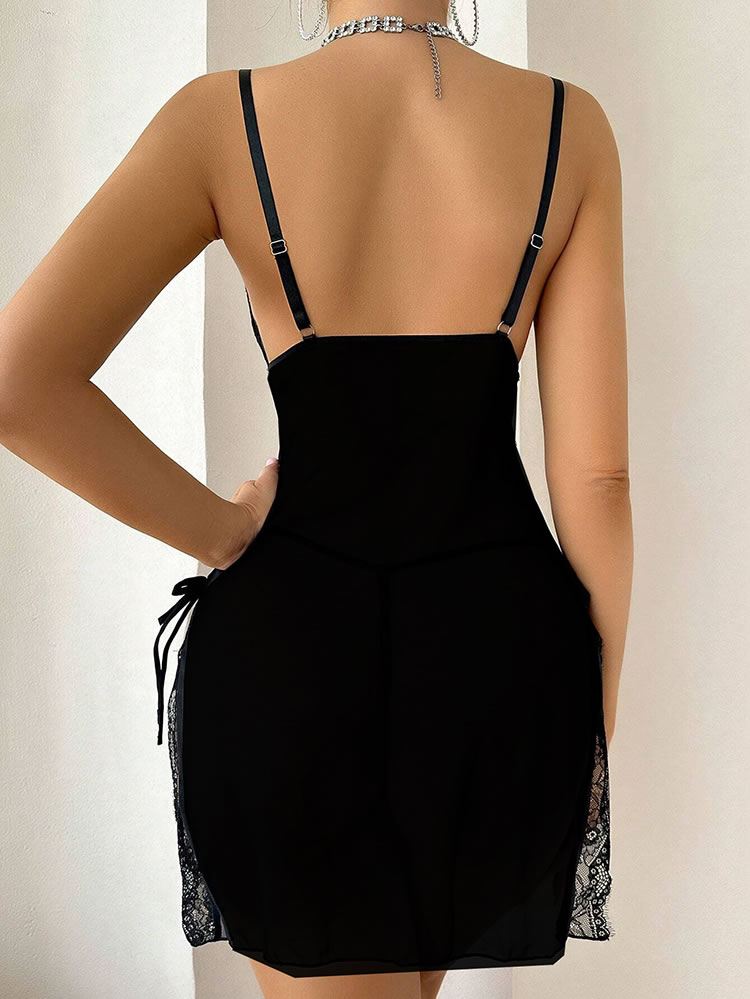 Elevate your lingerie collection with this seductive black lace chemise. The intricate lace detailing on the bodice and hem adds a touch of elegance, while the deep V-neckline enhances its allure. The adjustable straps ensure a comfortable fit, making it perfect for those who love to feel both confident and captivating.
