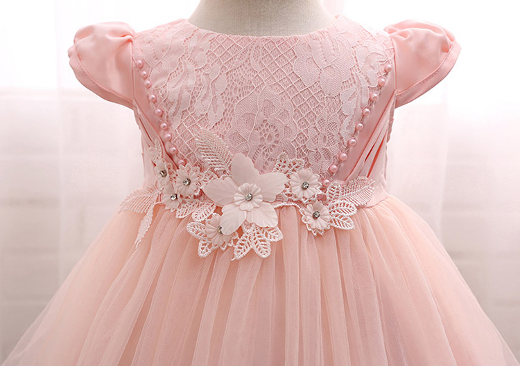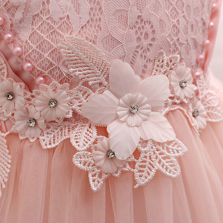 Waistline consists of a pretty tie on sash back and decorated with pearl and hollow flower in front. Tutu with The inside layer of the skirt is soft satin and densely tied tulle make the skirt fluffy, luxurious elegance, full with princess temperament. Graceful tulle layered dress with delicate flowers ornament perfectly match your princess.