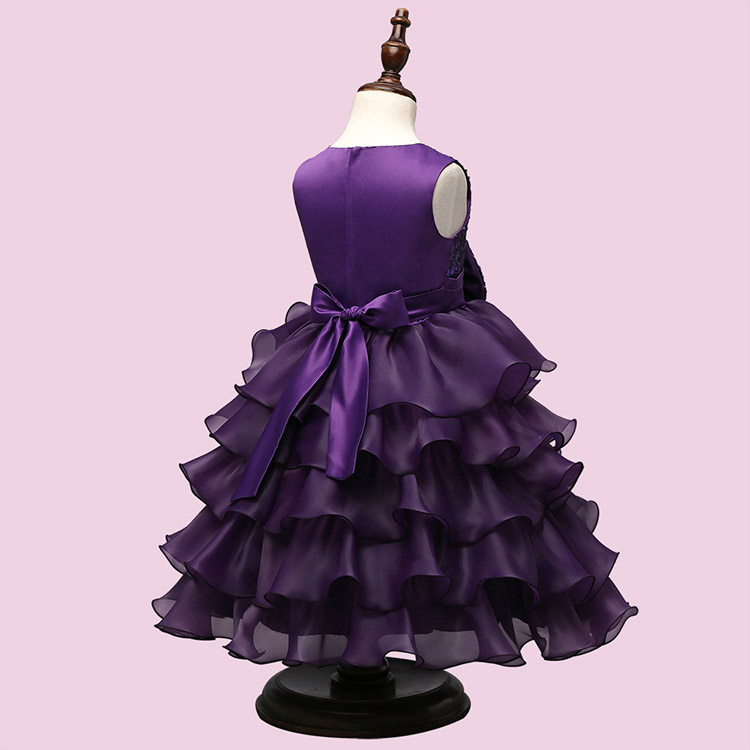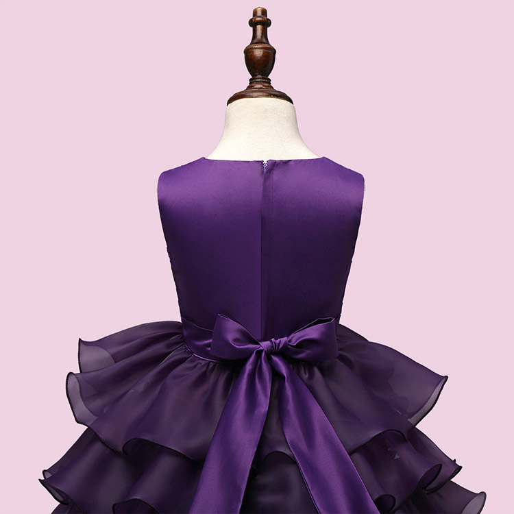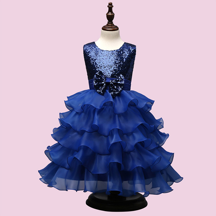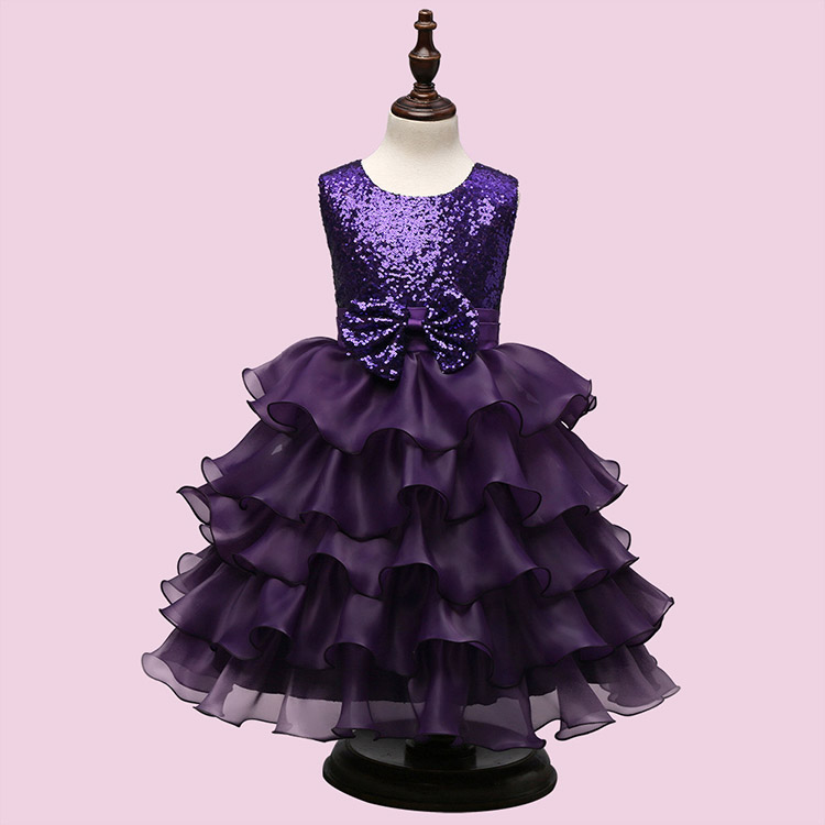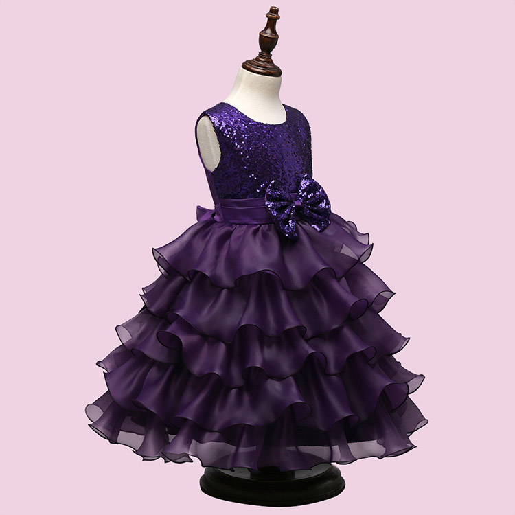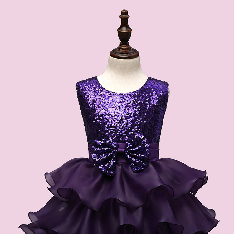 Girl Sleeveless Mosaic Sequins Multilayer Dress