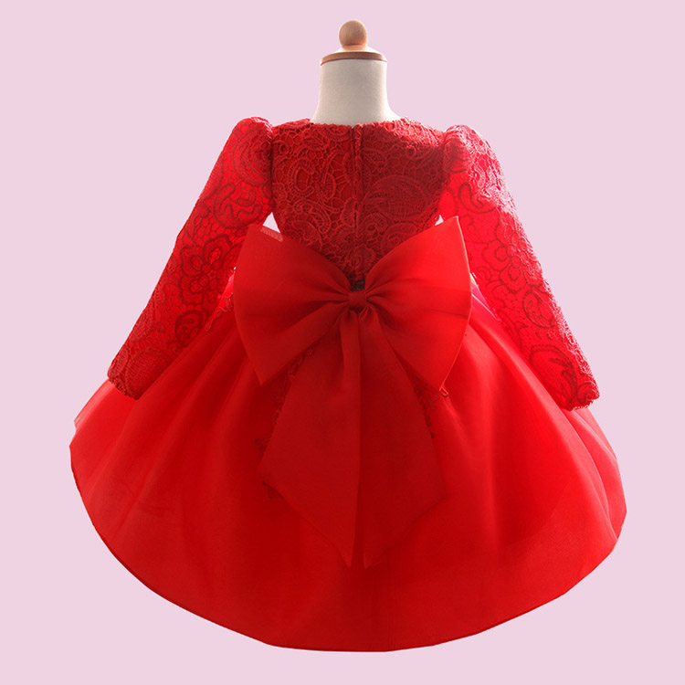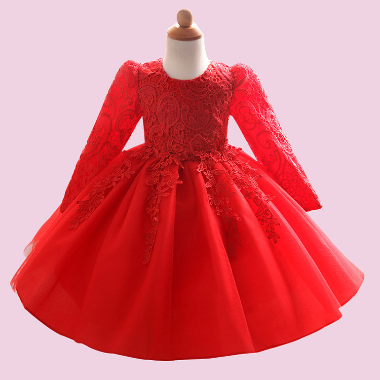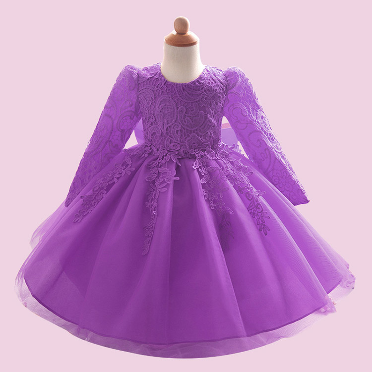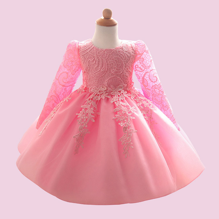 Girls' Lace Long Sleeve Princess Wedding Baptism Dress