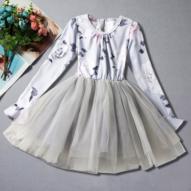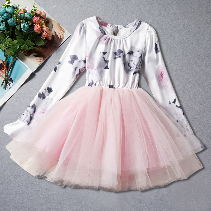 Girls Long Sleeve Princess Dress Pompon Dress