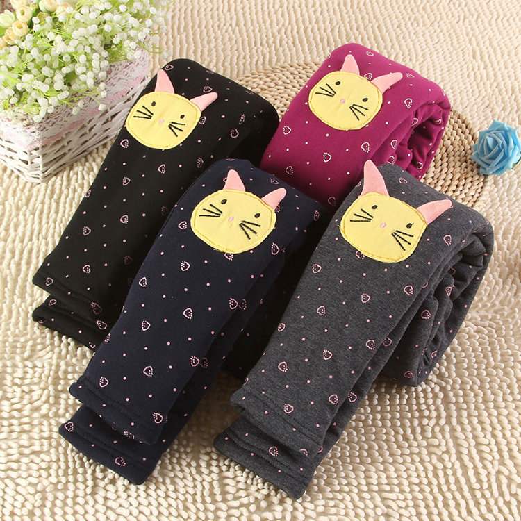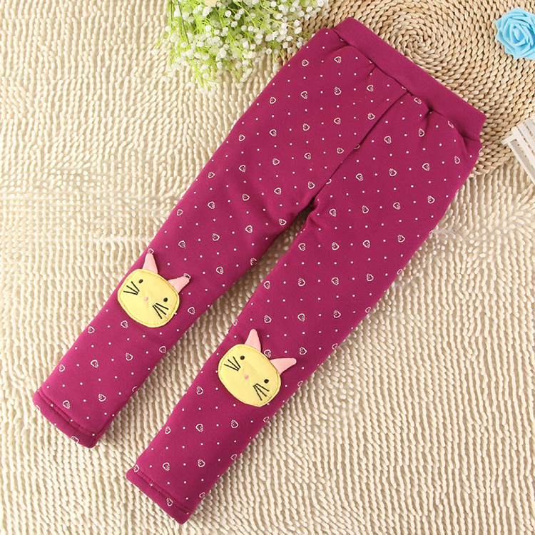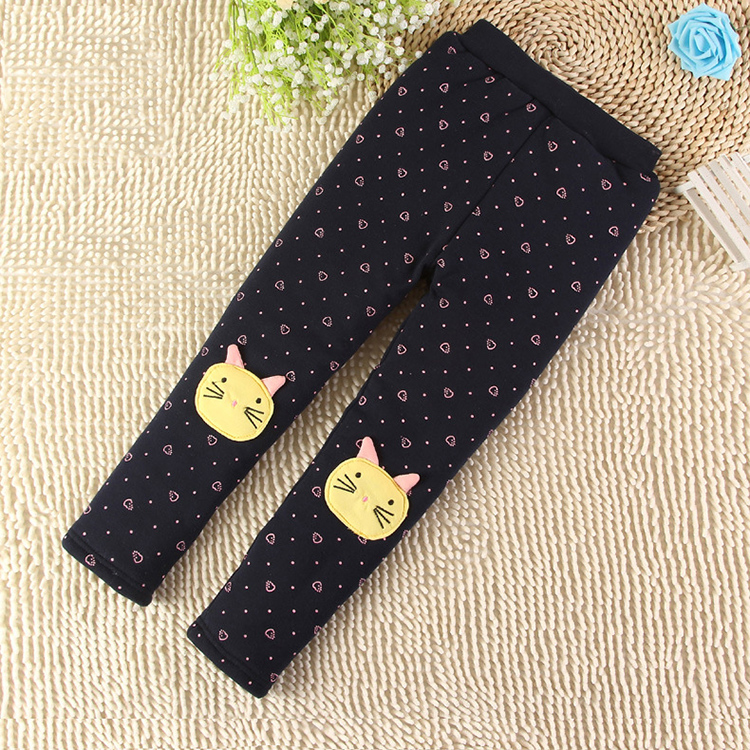 Girls Trousers Printing Thicken Warm Leggings Lined Pants