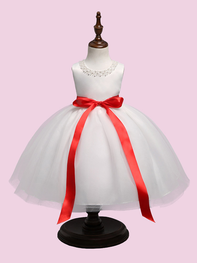 Girls Tutu Satin Belt Bow Formal Prom White Dress for Toddler and Baby Girl