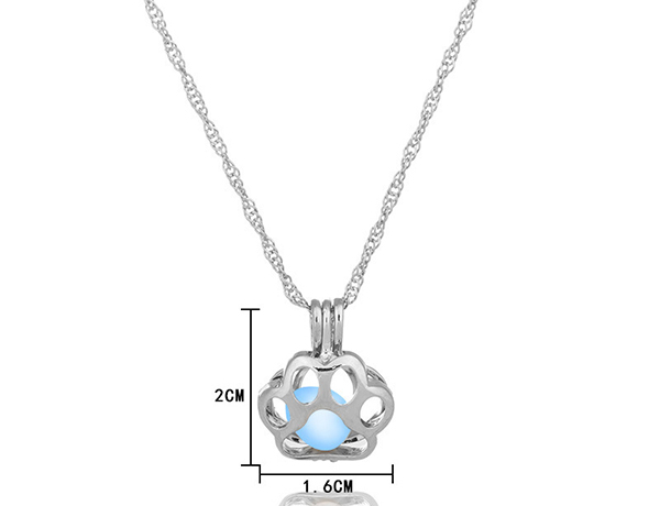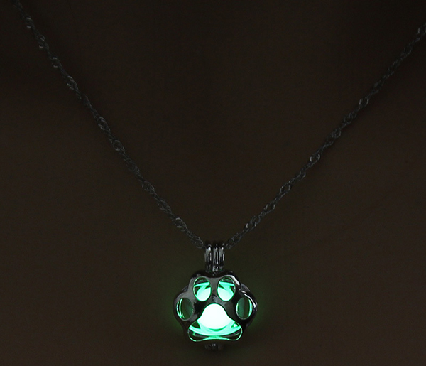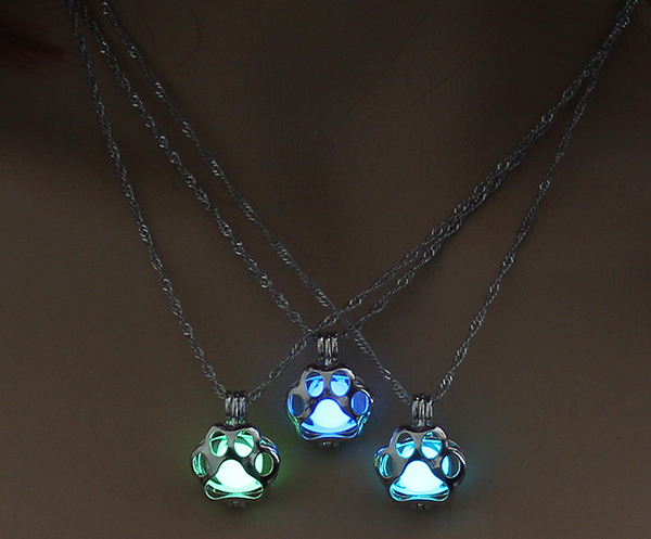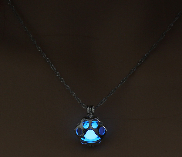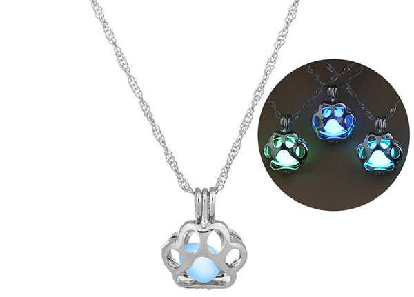 Glow in The Dark Necklace Dog Paw Silver Chain Jewelry Pendants Necklace