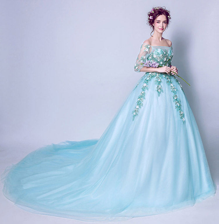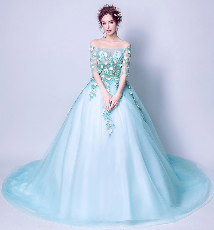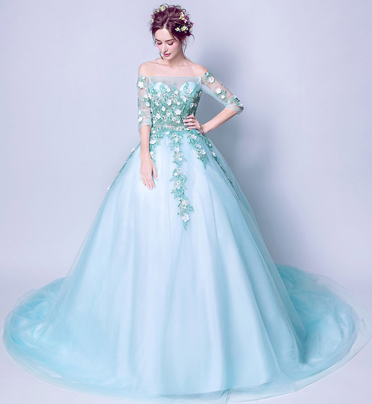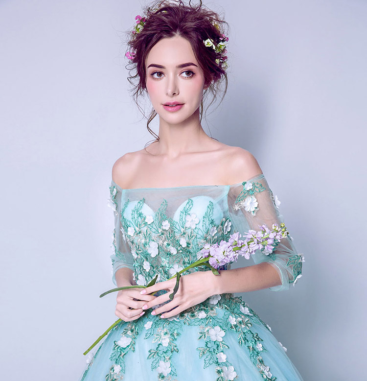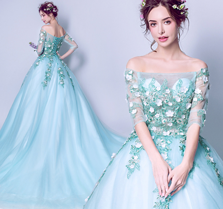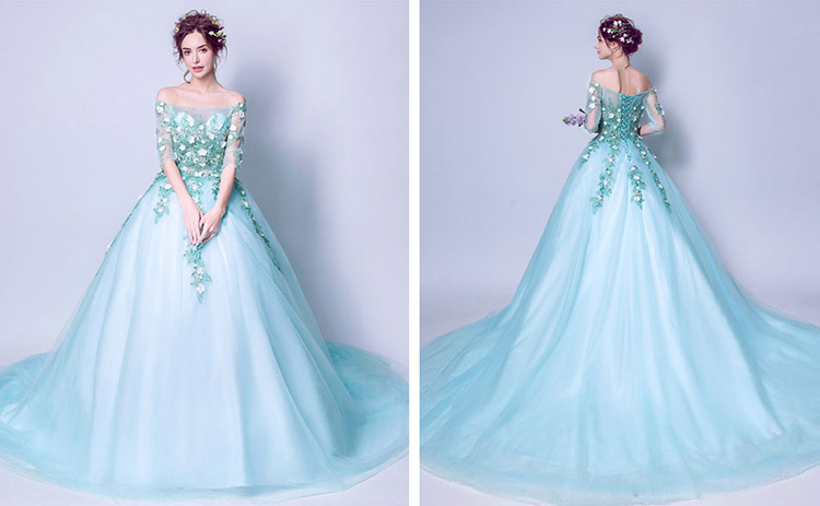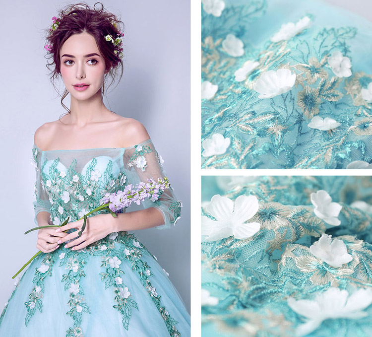 Design: Long style, Off the shoulder, Embroidery