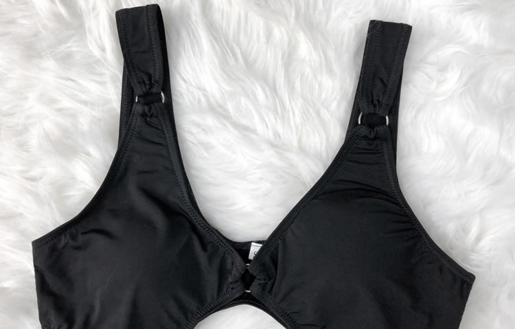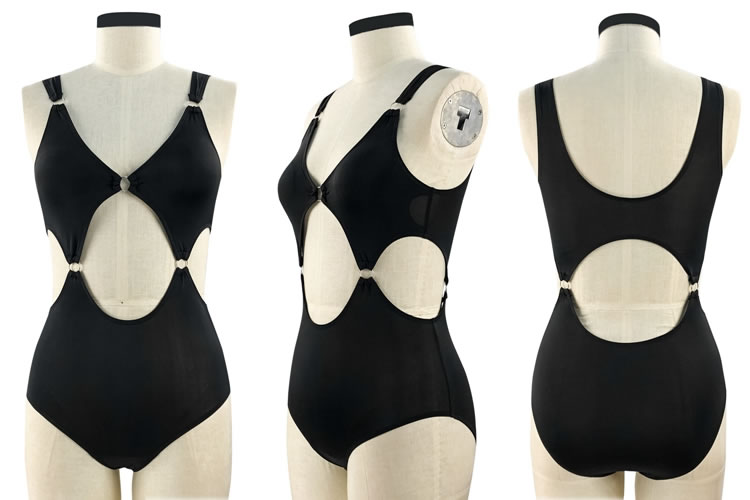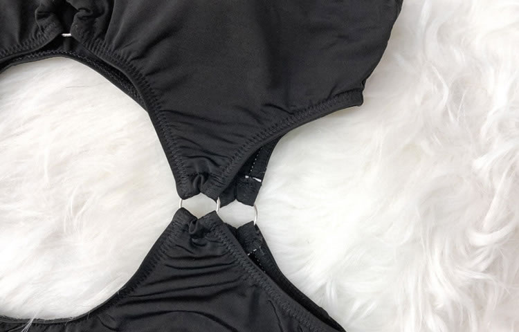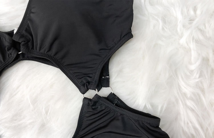 Take a dip in this sexy monokini swimsuit featuring a V-neckline, thick shoulder straps, a cut-in bodice panel with metal O-ring accent, a scoop back, and a cheeky cut back.