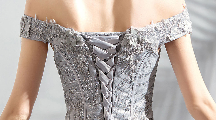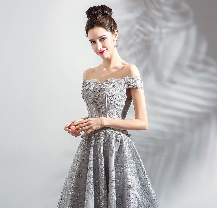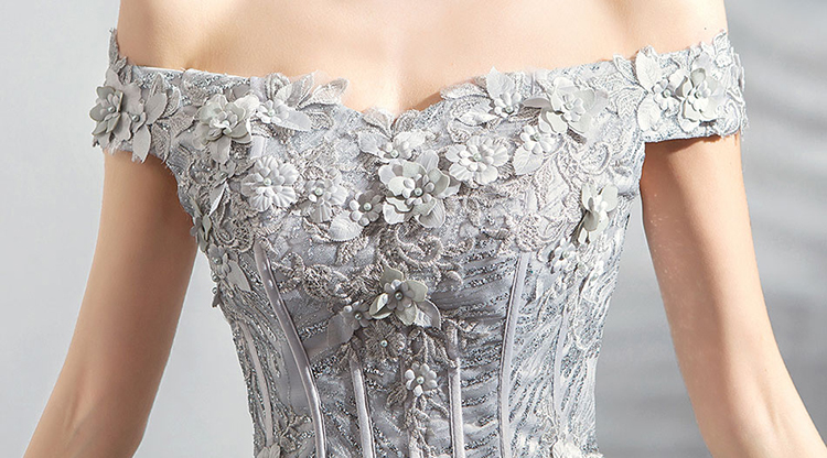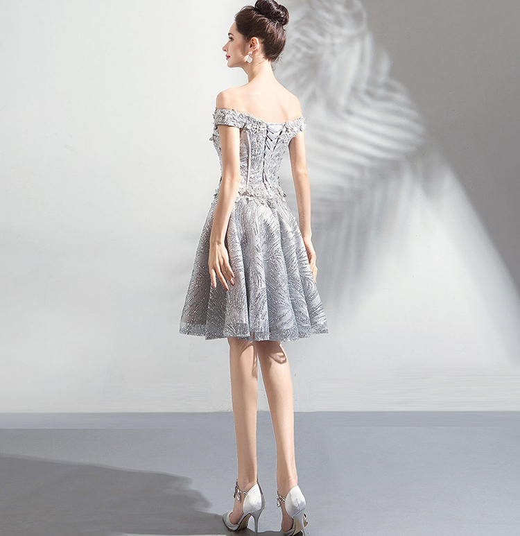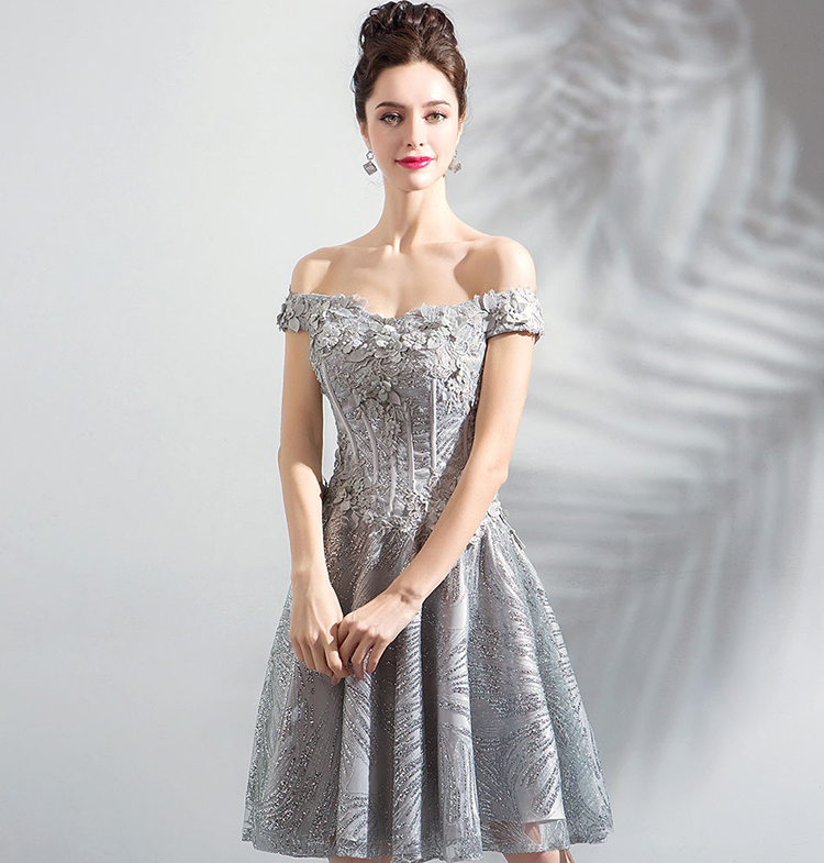 Gray Sexy Off The Shoulder Lace Cocktail Dress
