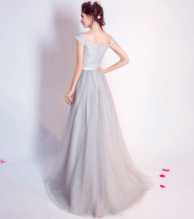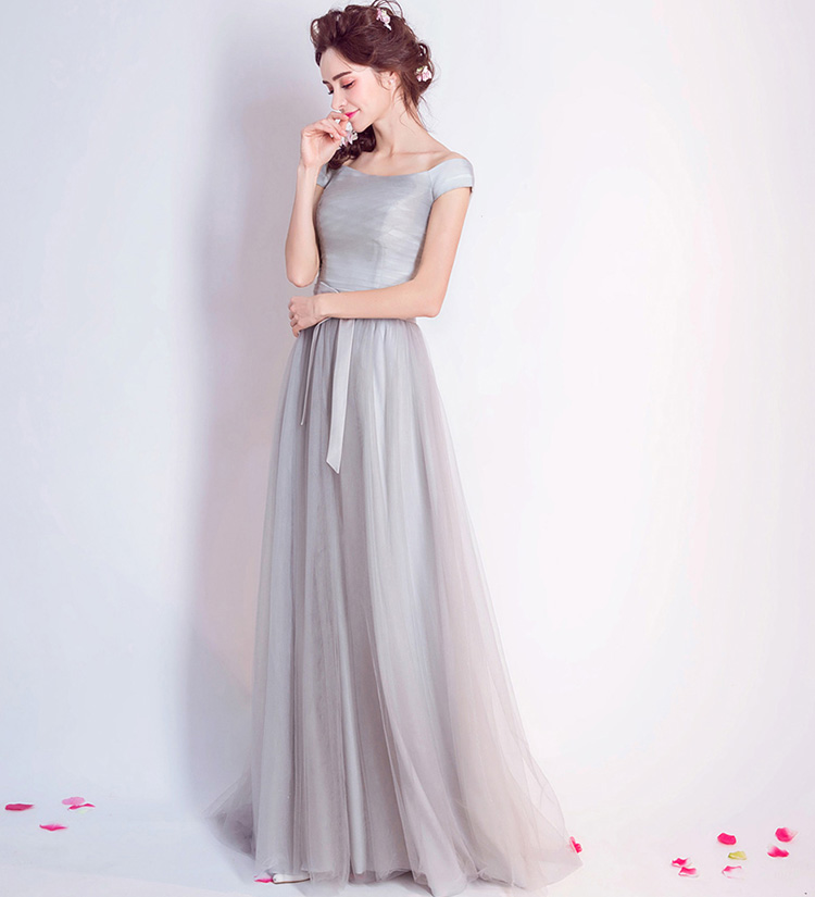 Grey Off-the-shoulder Sexy Long Evening Dress