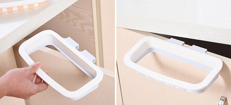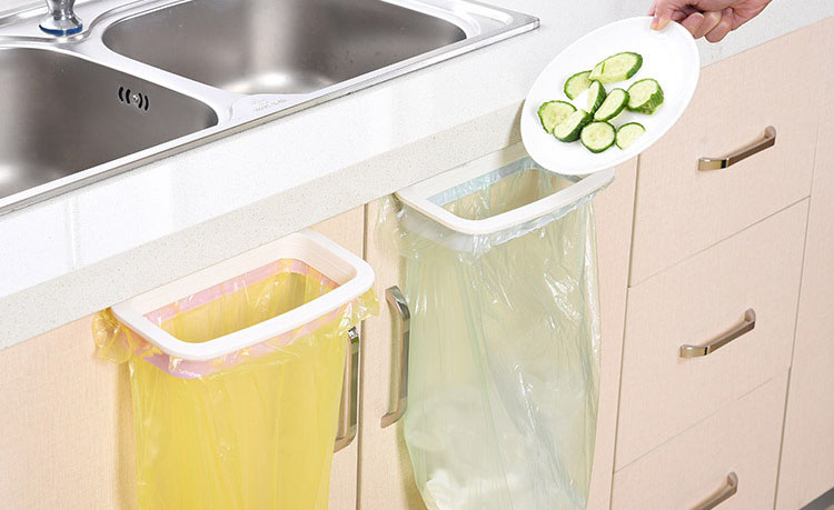- Hanging Trash Bag Holder is the most convenient and practical tool to collect annoying clutter in kitchen when you chop vegetables and cut potatoes.