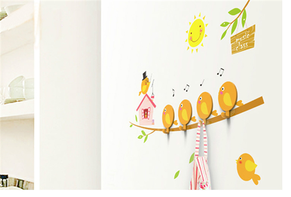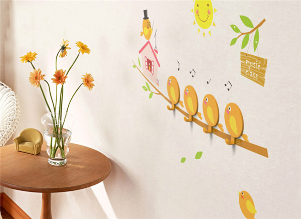 Happy Bird Music Removablae PVC Wall Sticker With 4 Hooks