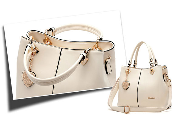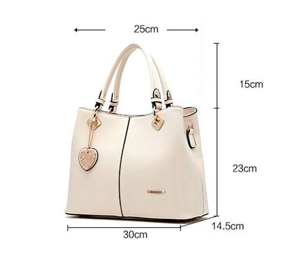 Heart Pendant Zipper PU Tote Hangbag