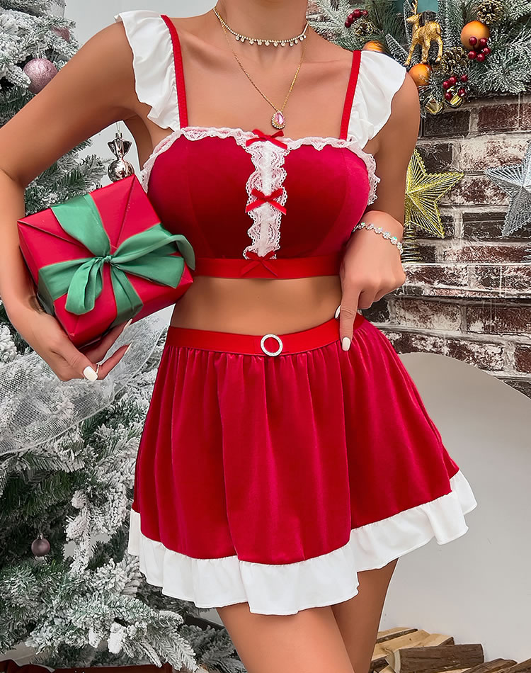 Unwrap the magic of the season in this alluring Holiday Vixen lingerie costume. Perfect for festive fun, this sultry ensemble will have you looking irresistible as you slide under the Christmas tree, ready to spread holiday cheer.