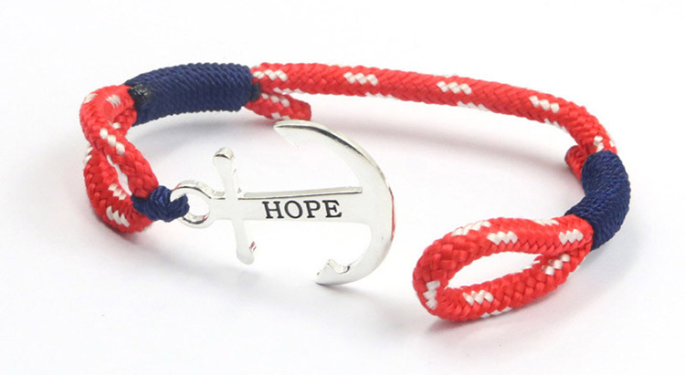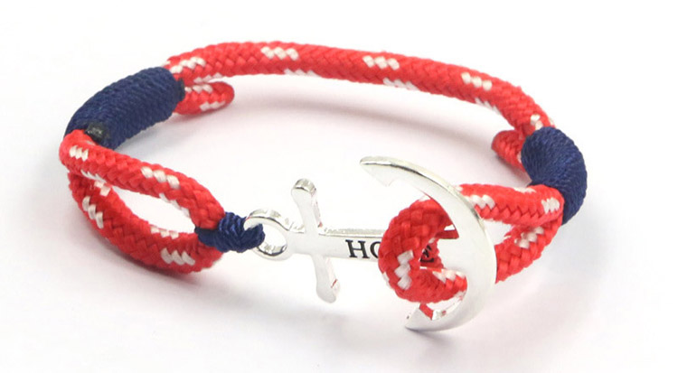 This Hope bracelet features a silver anchor, with blue whipping knot details. Crafted from a vibrant red cord, red is known to be the colour of romance and love. A versitile piece which can be worn for all occasions, adding character and style.