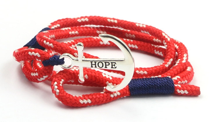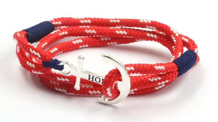 This triple wrap Hope bracelet features a silver anchor, with blue whipping knot details. Crafted from a vibrant red cord, red is known to be the colour of romance and love. A versitile piece which can be worn for all occasions, adding character and style.