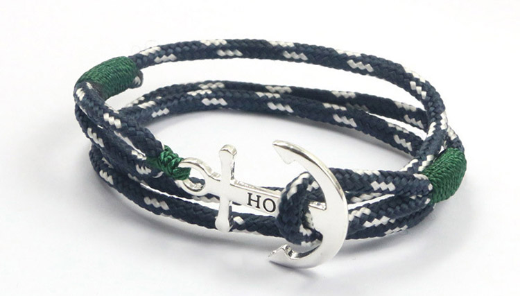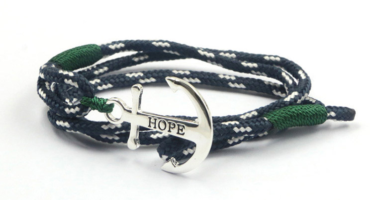 This triple wrap Hope bracelet features a silver anchor, with green whipping knot details. Green is known to be the colour of luck and good fortune. A versitile piece which can be worn for all occasions, adding character and style.