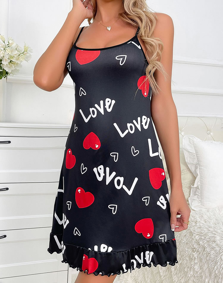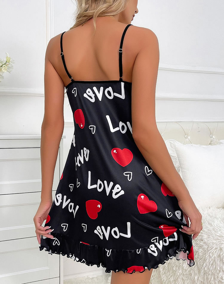 Stay up late in this flirty sleep chemise featuring love printed cups, adjustable spaghetti straps, a love printed bodice, and a mini length.