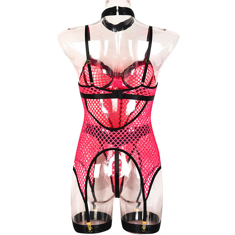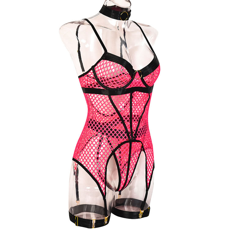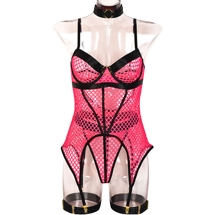 Tempt and tease in this exclusive bustier set featuring sheer underwire cups with an O-ring details, an allover sheer honeycomb design, adjustable spaghetti straps, a hook and eye back closure, a sheer bodice, an open back panel, adjustable garter straps, adjustable leg garters, and a matching thong.
