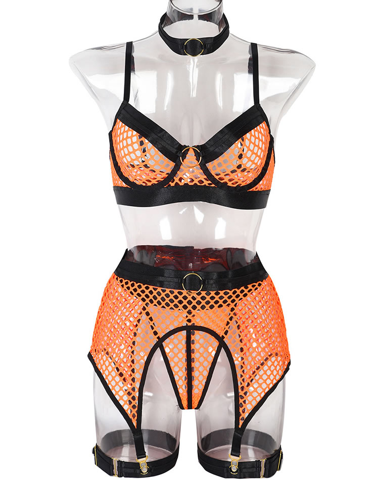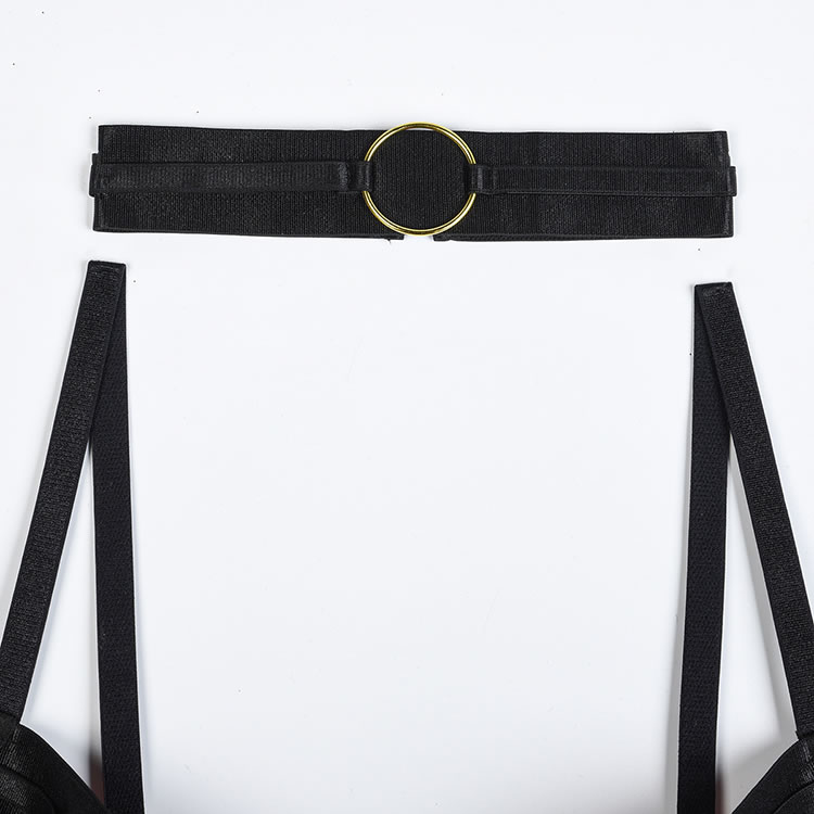 Leave your partner hungry for more in this sultry bra set featuring sheer underwire cups, adjustable shoulder straps, a hook and eye back closure, a matching garter belt with garter straps, wraparound leg garters, and a matching panty with a thong cut back.