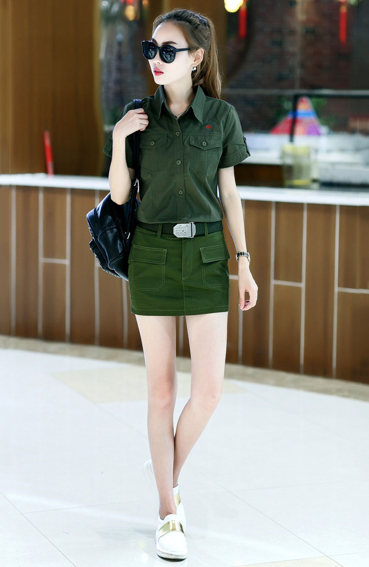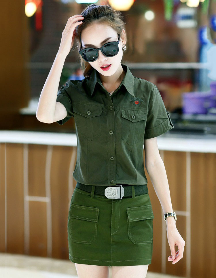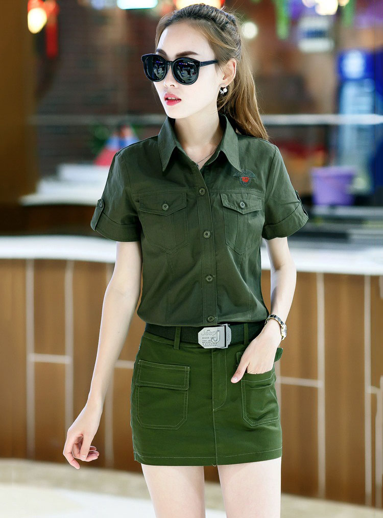 Ladies Army Green Casual Short Polo Shirt T-Shirt