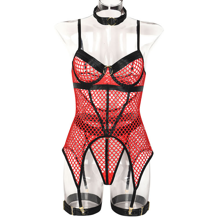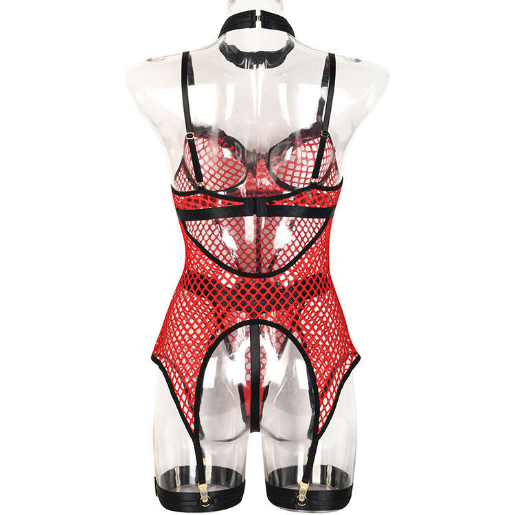 Captivate your lover in this stunning bustier set featuring sheer underwire cups with an O-ring details, an allover sheer honeycomb design, adjustable spaghetti straps, a hook and eye back closure, a sheer bodice, an open back panel, adjustable garter straps, adjustable leg garters, and a matching thong.
