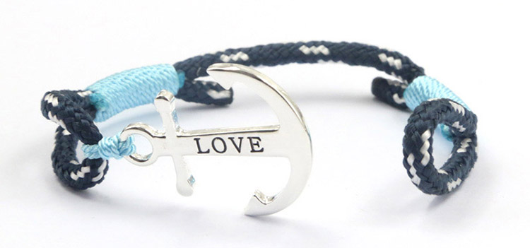 Love Silver & Light Blue Anchor Bracelet