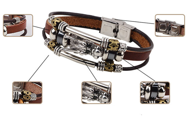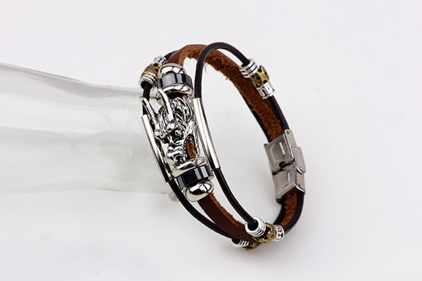 Luxe Silver Dragon PU Leather Bracelet With Rivets Rope