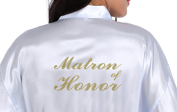 • These robes with glittering gold graphic "Matron of Honor"  in script on the robe's back, it's perfect for the wedding party and as a gift.Give us a chance, and you won't be regret for