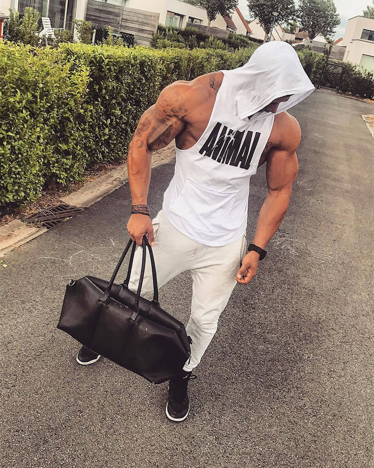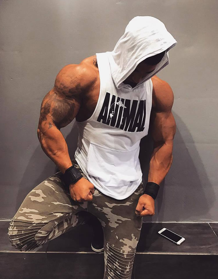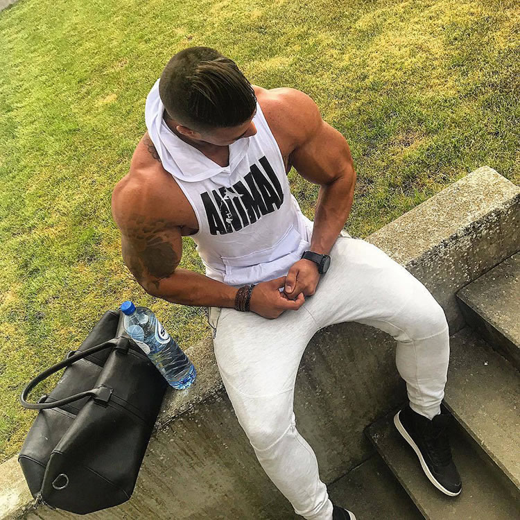 Men Bodybuilding Cotton Tank top Gyms Fitness Hooded Vest Sleeveless Workout Clothing