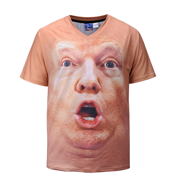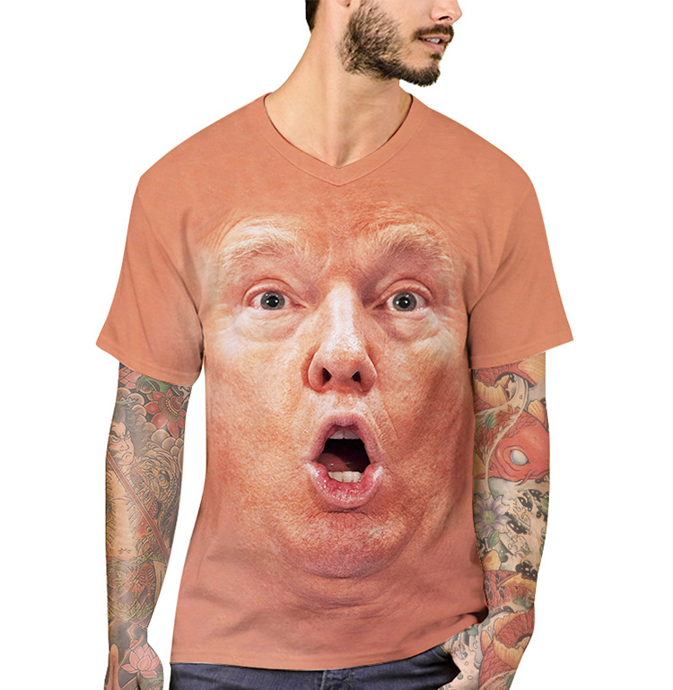 Men's 3D Donald Trump Face Printed V Neck Short Sleeve T-Shirts Tee