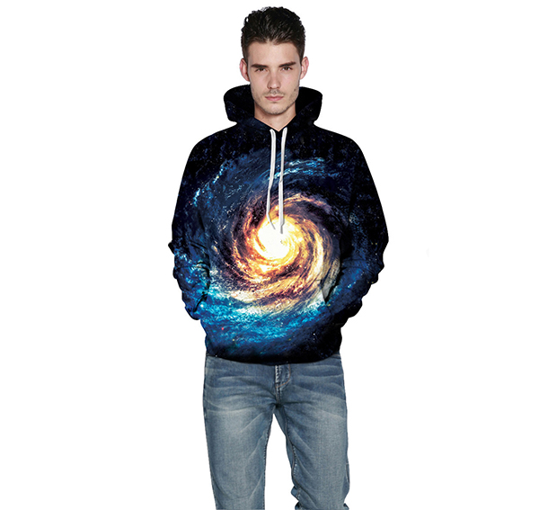 Men's 3D Starry Sky Print Long Sleeve Pullover Hoodie