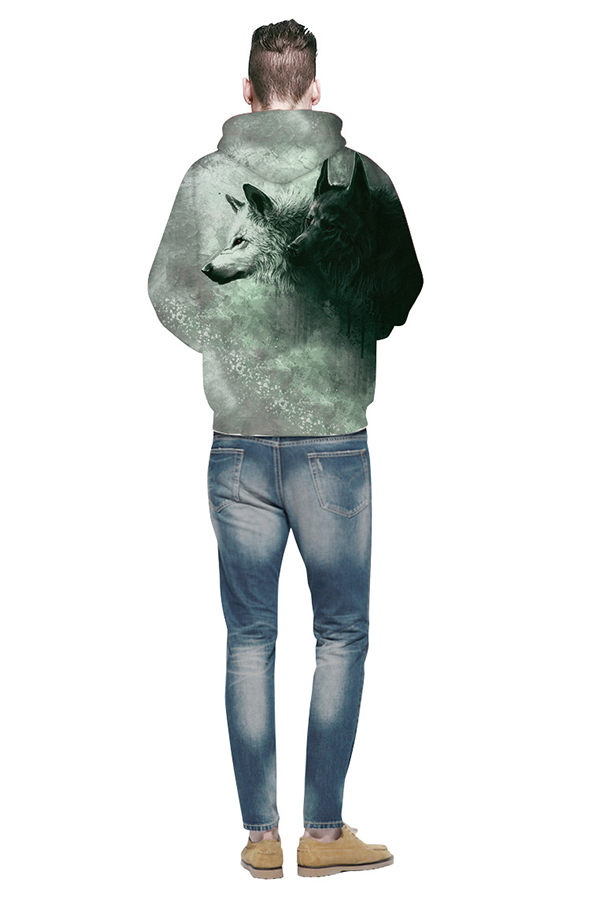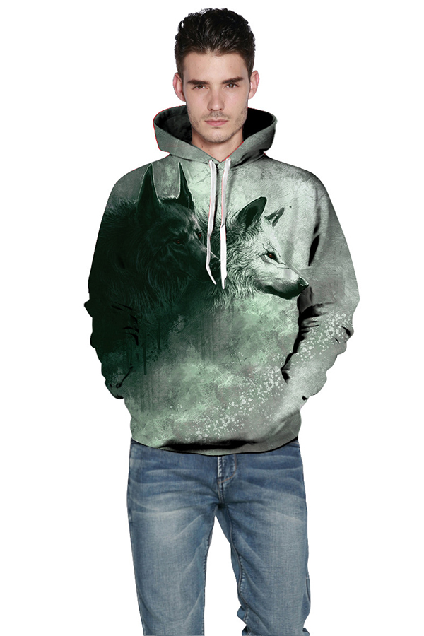 Men's 3D Wolf digital Print Long Sleeve Hoodies