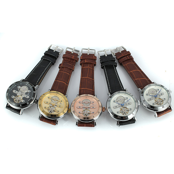 Men's Automatic Mechanical Luxury Leather Strap Skeleton Watch