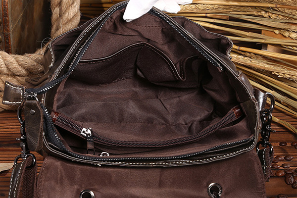 Interior liner with a back zip pocket, two slip pockets and a center zip compartment.