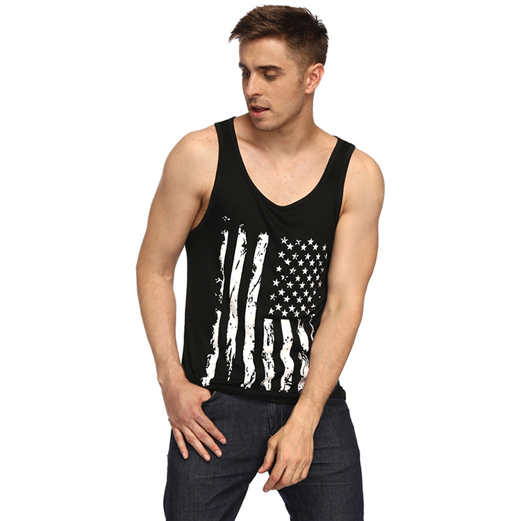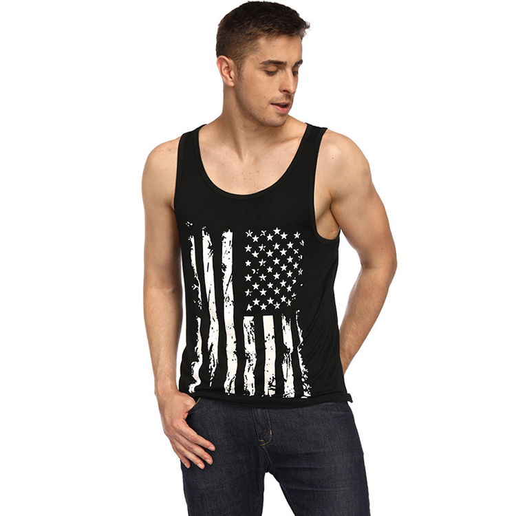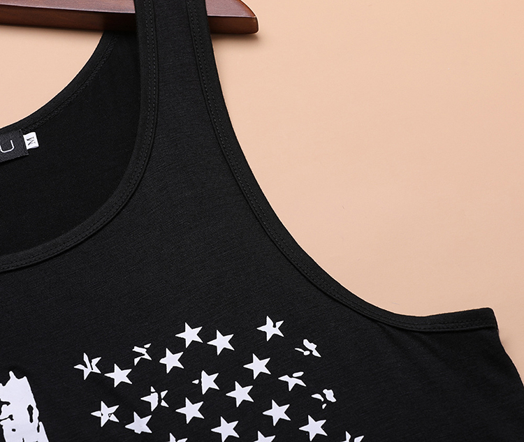 Men's Casual Cotton Front Print Sleeveless Tank Tops Muscle Tees