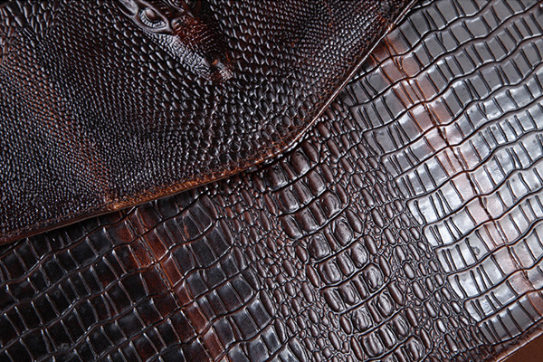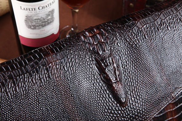 Embossed with alligator head and skin pattern.