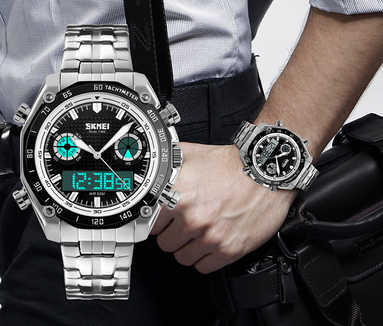 Men's Digital Electronic Stainless Steel Band Waterproof Sport Watch Casual Military Multifunction Watch