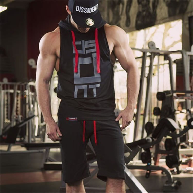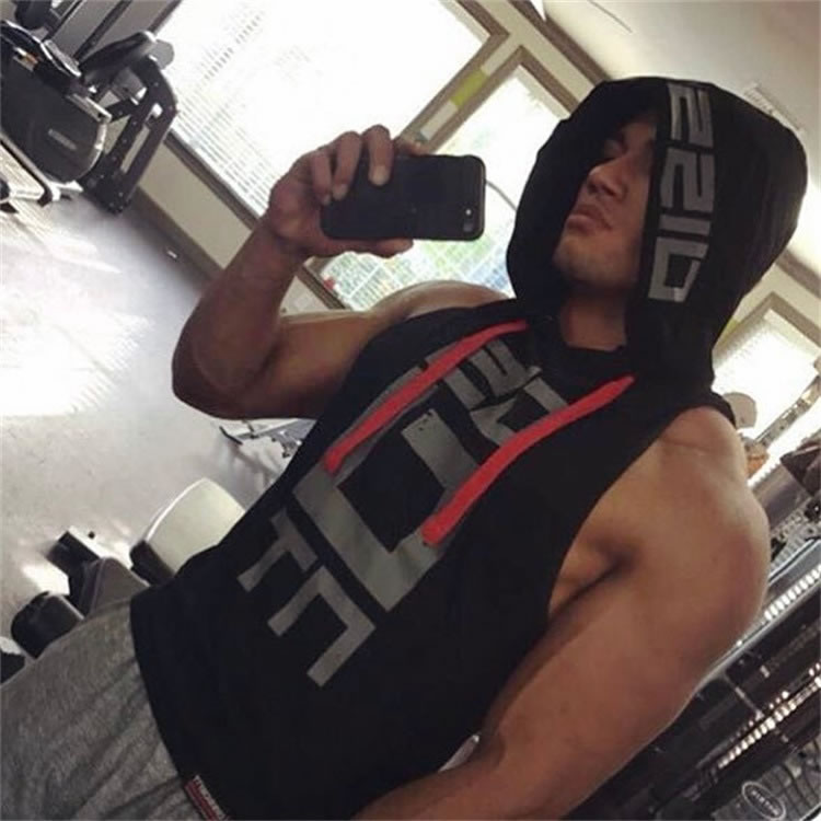 Men's Gym Bodybuilding Fitness Muscle Hoodie Tank Top