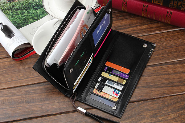 Interior liner featuring multiple card slots, zip pocket and full-length slot